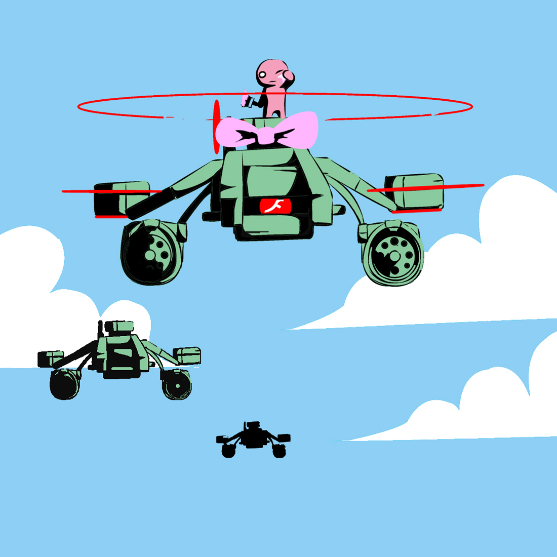 "Pray For Flash" ゲーム作品のコンセプトアート。何故かバンクシー意識